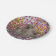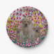 Imaginados em fundo floreado estão três cachorros Labrador em um design de tinta a óleo
