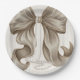 Prato De Papel Laço Listrado de Marfim e Colar de Pérolas