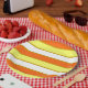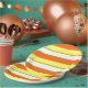 Placas de papel muito vivas desenhadas com listras de laranja e amarelo que ambas gostarão. Por celeste@khoncepts.com