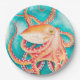 Prato De Papel Laranja Vermelho Tentáculos Octopus Aquarela