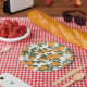 Placa de papel com o tema Citrus, com lindas laranjas pintadas à mão e verde adornados com carateres de escrita caprichosa.