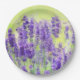 Esta placa de papel apresenta um design de pintura de óleo de campo de flores de lavanda com fundo amarelo/verde. É excelente para aqueles que adoram decoração floral.