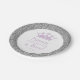 Coroa princesa de tiara em prata e lavanda leve com padrão brilhante roxo em uma placa de papel personalizada com idade editável adequada para qualquer festa feminina. Perfeito para uma celebração de aniversário da princesa de menina em casa. O trabalho de arte é uma imagem impressa de brilho - não é usada nenhuma brilha real, portanto, nenhuma bagunça. Visite o compro Paper Grape Zazzle para coordenar suprimentos de partes.