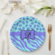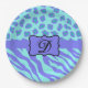 Prato De Papel Lavanda de Turquesa Zebra Leopardo Monograma