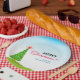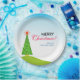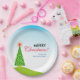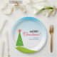 A placa de papel Le Sapin apresenta uma bela e bem decorada árvore de Natal verde numa colina e com uma estrela vermelha brilhante no topo. "Sapin" é a árvore de Natal francesa. © Manhã 6