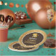 Placas de papel elegantes que caracterizam um filhote pequeno adorável com tipografia vibrante em um marrom escuro e em um fundo do brilho do ouro do falso.