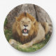 Conjunto de oito placas de papel de 9" com uma imagem de um leão bonito na Reserva Nacional de Maasai Mara.