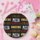 Legal e divertida piza peperoni... com um padrão de crosta de queijo... presente para o amante da pizza. Texto amarelo, vermelho, branco e marrom a preto. Queijo amarelo, pepperoni vermelho, pizza branca e crosta castanha. Design para comedores de pizza, amantes de pizza, pizzarias...