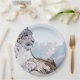 Um leopardo de neve orgulhoso senta-se esboçado contra seu habitat montanhoso.