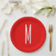 Prato De Papel Letra inicial Monograma Estilo moderno Branco verm