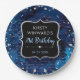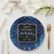 Prato De Papel Letras Brilhantes Azuis e Iridescentes Aniversário