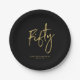 Este prato de papel personalizado irá adicionar um detalhe elegante ao moderno aniversário de 50 anos dourado. Este design apresenta letras elegantes e simples "Cinquenta" com texto personalizado. Convites e suprimentos para festa correspondentes estão disponíveis na minha loja BaraBomDesign.