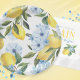 Pratos de Papel Elegantes e Doces Limão e Flor em Aquarela Branca. Apresentando um belo fundo azul ardósia empoeirado e elegante com flores em aquarela e limões amarelos doces. Disponíveis em 2 opções de tamanho. Ótimo para qualquer evento com tema de limão, como um aniversário de limão, chá de bebê "Pequeno Limão" ou um chá de noiva "A Principal Atração"!