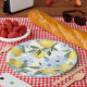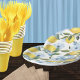Prato De Papel Limão e Flor em Aquarela Branca