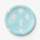 Estas lindas placas de papel azuis e turquesa com tema de praia têm um design de cavalos-marinhos, dólares de areia, conchas e corais. Perfeitas para um casamento com tema de praia ou chá de bebê.