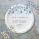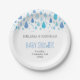 Gotas de chuva azuis caem em direção aos seus detalhes personalizados neste lindo baby shower, sprinkle, chá de casal ou prato de papel para revelação do sexo do bebê. Projetado por Thisisnotme©
