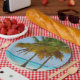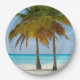 Prato De Papel Lindas Palmeiras em uma praia tropical