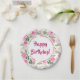 Prato De Papel Lindas Rosas Rosa Felizes Aniversário