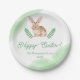 Prato De Papel Lindo Coelho de Aquarela Marrom com Páscoa de Verd