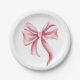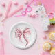 Pratos de papel de laço rosa minimalistas e elegantes para sua celebração feminina. Estes pratos de papel de laço rosa são perfeitos para chás de bebê de menina, chás de noiva, quinceaneras e festas de aniversário. Ilustrado e projetado por Patricia Alvarez.
