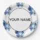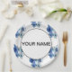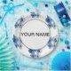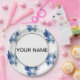 Ilustrações de borboletas azuis fofas e um modelo de nome.