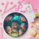 Prato De Papel Lindos elfos brincam sob pílula redonda de cogumel