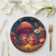 Prato De Papel Lindos elfos brincam sob pílula redonda de cogumel