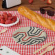Prato De Papel Linhas Gráficas Laranja e Azul
