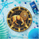 Ilustração de um leão simbolizando o signo Leo zodiac, rodeado por elementos celestes, ícones zodíacos e um fundo cósmico, refletindo astrologia e elegância estrelada.