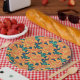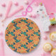Placas de papel em um padrão de lírios/dillírios laranja com fundo verde-claro