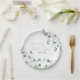 Placa de papel elegante e moderno chá de noiva de verão com flores apresenta um buquê de Lisianthus suculento aquarela branca em tons de branco e marfim, com folhas botânicas verdes exuberantes e eucalipto. Por favor, encontre mais designs e variações correspondentes na minha loja "celebrationmoment".