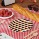 Prato De Papel Listras alaranjadas, pretas, brancas
