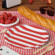 Melhore sua próxima reunião com nosso delicado conjunto de placas de papel com faixas grossas, ousadas, vermelhas e brancas. Quer você esteja hospedando um piquenique de verão vivo, uma vibrante cesta de aniversário, ou um churrasco privado, essas placas de papel resistentes irão lindamente complementar seu cenário de mesa. Simplifique sua experiência divertida e deixe uma impressão duradoura com essas impressionantes placas de papel vermelho e branco listrado.
