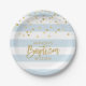 Prato De Papel Listras Dourados azuis personalizadas do MENINO do