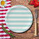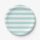 Prato De Papel Listras Horizontais Largas Turquesa Claro e Branco