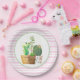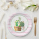Prato De Papel Listras Rosa e Branca com Suculentas de Cacto
