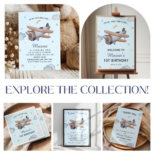 Vintage Airplane Time Flies First BirthdayCriado por Anna ArtDesign