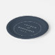 This elegant design features a minimalist and sophisticated style, perfect for a wedding celebration. The circular motif with clean lines creates a timeless look, while the navy blue color palette exudes classic charm and refinement. The simple yet stylish typography adds to its understated elegance, making it ideal for those who appreciate modern simplicity. Whether used on plates or invitations, this design captures an air of grace and poise, setting the tone for a memorable special occasion.