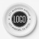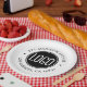 Placas de papel personalizadas com o logotipo da sua empresa e um modelo de texto fácil de personalizar.