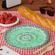Inspirado por um prato de vidro verde antigo, este design apresenta um impressionante motivo de raios de sol no centro, rodeado por bordas geométricas delicadas. Os tons verdes translúcidos e detalhes gravados à mão evocam vidraria prensada vintage, trazendo um toque nostálgico e elegante para a sua mesa. Perfeito para amantes de antiguidades, encontros em estilo vintage ou adicionando um acento retrô único a qualquer ocasião. Feito a partir de imagens reais de pratos históricos.