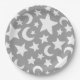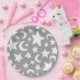 Luinhas crescentes brancas e estrelas em fundo cinza