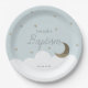 Prato De Papel Lua Crescente e Estrelas - Batismo Azul Claro