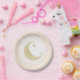 Prato De Papel Lua Dourada Rosa Brilhante Estrelinha