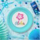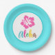 Estas placas de papel para festa tropical Aloha Luau apresentam uma flor de hibisco tropical brilhante e um “Aloha” moderno em letra cursiva multicolorida. Ótimo para luau de aniversário, chá de bebê, formatura ou casamento. Adequado para celebração de luau de qualquer idade.