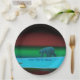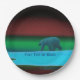Um urso polar vagueia o gelo durante a longa noite polar; o Norte brilha em vermelho e verde à distância. Adicione seu próprio texto.