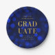 Chapa de graduação com a menção "Formando" em folha de ouro falsa contra um fundo padrão de luzes azul-safira. Personalize isso com seus detalhes substituindo o texto do marcador de posição. Para obter mais opções, como alterar a fonte, o tamanho/cor do texto ou o espaçamento entre letras, clique no botão "Personalizar". *Observe que a Marca d'água do Zazzle que aparece na visualização de zoom NÃO aparecerá no produto impresso final. © Rosewood e Citrus