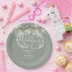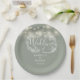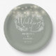 Esses pratos de papel elegantes com luzes de corda bonitas e um floral desenhado à mão podem ser personalizados com suas informações em letras brancas elegantes em um fundo verde sage. Criado por Thisisnotme©