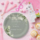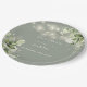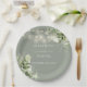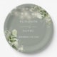Luzes de corda floral verde musgo elegantes para casamento, prato de papel personalizado com seus nomes e data especial do casamento. Projetado por Thisisnotme©