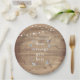 Um prato de papel rústico campestre com luzes de corda sobre um jarro de pedraria vintage repleto de sua mensagem personalizada e delicadas flores silvestres espalhadas sobre um fundo de madeira natural envelhecida. Perfeito para casamentos, chá de noiva, chá de bebê, batismos, festas de noivado, celebrações de aniversário, formaturas, encontros de aniversário e outros eventos especiais ao longo do ano! Criado por Thisisnotme©