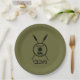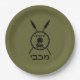 Uma representação "subjugada" militar negra do escudo de um Macabcabee e de duas lanças. O escudo é enfeitado por um leão e o texto lendo "Yisrael" (Israel) no alfabeto paleohebraico. O texto hebraico que lê "Maccabee" também aparece. Os Macabeus eram rebeldes judeus que libertaram Judeia do jugo do Império Seleúcio. Chanukkah não é apenas um festival de inverno-médio com velas e iguarias fritas, ela celebra uma vitória militar, e garante a liberdade religiosa, sobre o Império Seleúcio. Além disso, a revolta foi uma guerra civil envolvendo aqueles judeus que eram leais ao G-d e aqueles que tinham adotado o Hellenismo dos Seleucids.